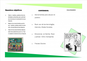 - Talleres de inteligencia emocional, prevención de mal uso de las TICs y prevención de la adicción de alcohol y tabaco en alumnado de 5º, 6º de Primaria y primer ciclo de la ESO.